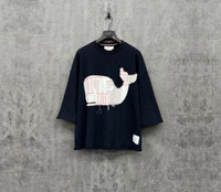 Thom Browne New Arrival: Short-Sleeve Sweatshirt with Embroidered Logo Pattern