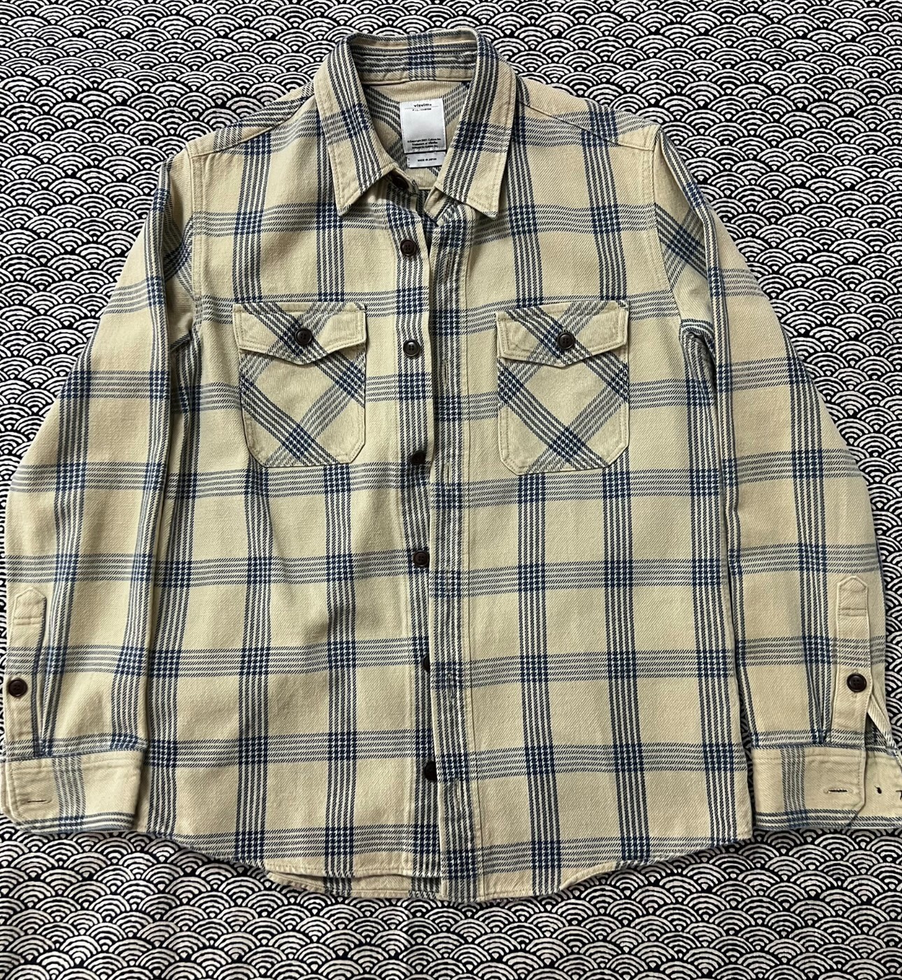 [ Description ] This VISVIM 15SS vintage blue plaid shirt is a classic choice in the fashion industry. It is made of high-quality fabric and exquisite craftsmanship, giving a sense of antique elegance. The plaid design on the shirt adds a vintage element, reminiscent of the bygone era. It is suitable for various occasions and can be paired with casual pants or jeans to show off your fashion sense and taste. [ Condition ] 9.8/10 [ Measurements ] - Size: 1 - Length: 70 cm - Chest: 100 cm - Shoulder: 41 cm [ Authenticity ] 100% authentic [ Shipping policy ] - Ship from Hong Kong to global with a flat rate of 25 USD - It typically takes 1-2 weeks to be delivered, depending on the destination [ Return policy ] All sales are final, no cencellation or return or exchange [ Item ID] 20230515-10