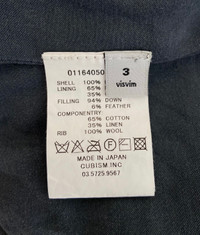 [ Description ] The VISVIM 16AW SPOT SANJURO KIMONO DOWN JKT is famous for its unique design style and high-quality production. It draws inspiration from the traditional Japanese kimono style and features mud dyeing, showcasing a unique handcrafted aesthetic. Its down filling and excellent warmth performance keep you comfortable and warm in the cold winter, making it a perfect combination of fashion and practicality. [ Condition ] 9.6/10 [ Measurements ] - Size: 3 [ Authenticity ] 100% authentic [ Shipping policy ] - Ship from Hong Kong to global with a flat rate of 25 USD - It typically takes 1-2 weeks to be delivered, depending on the destination [ Return policy ] All sales are final, no cencellation or return or exchange [ Item ID] 20230515-03