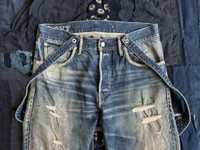 VISVIM 19AW TRAVAILLER BRACES DRY DENIM-7 DRY7 FIL Limited Edition Washed Distressed Overalls