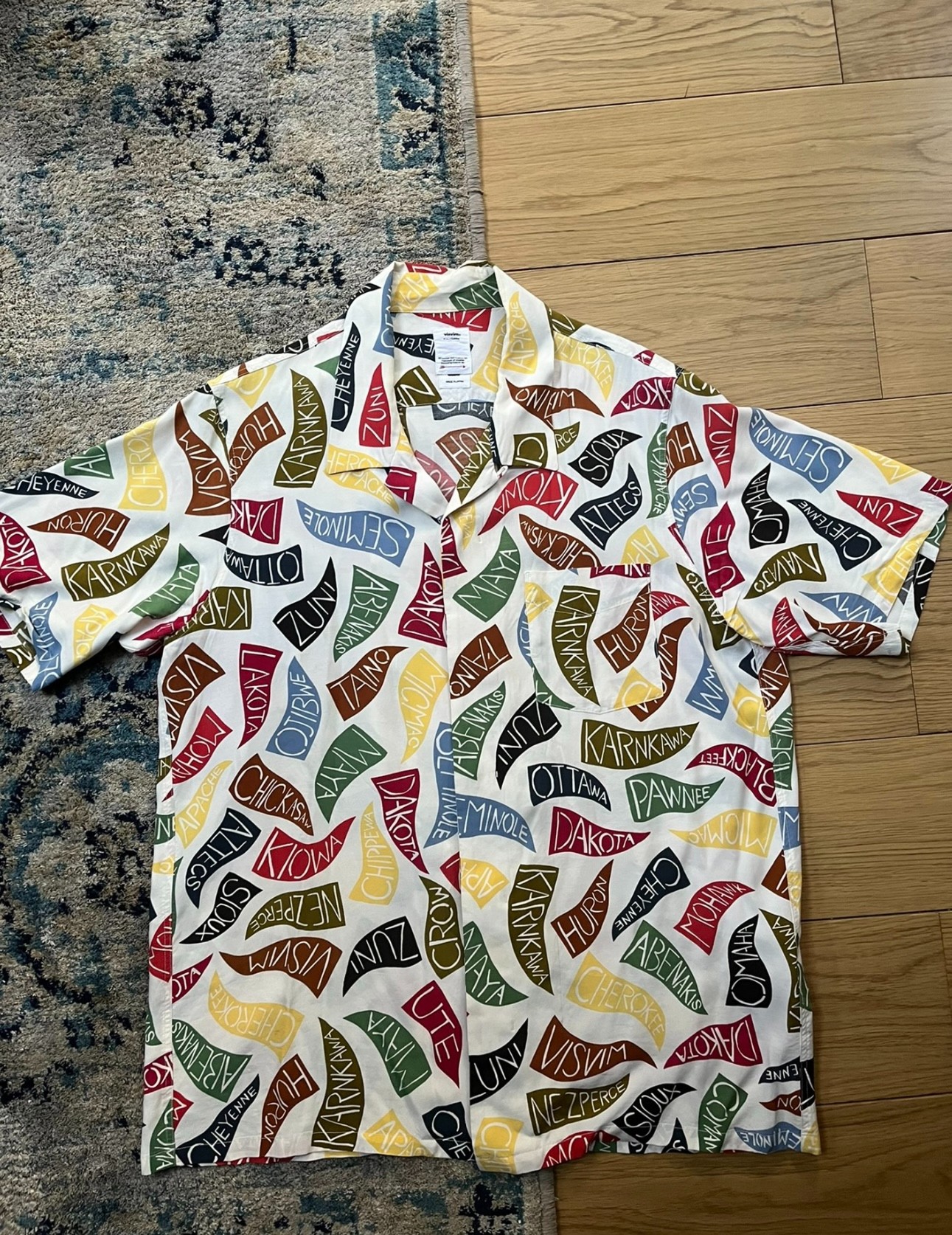 [ Description ] This is a short-sleeved shirt from the VISVIM 2019 Spring/Summer collection, called the FREE EDGE SHIRT S/S PENNANTS. The overall design is simple and elegant, using lightweight fabrics that are comfortable and breathable, making it perfect for summer wear. The front and back of the shirt are printed with colorful pennants, giving it a sporty and playful vibe. The sleeves and hem feature the FREE EDGE design, adding to its unique design elements. [ Condition ] 9.9/10 (+ Tag) [ Measurements ] - Size: 4 - Length: 74m [ Authenticity ] 100% authentic [ Shipping policy ] - Ship from Hong Kong to global with a flat rate of 25 USD - It typically takes 1-2 weeks to be delivered, depending on the destination [ Return policy ] All sales are final, no cencellation or return or exchange [ Item ID] 20230509-04