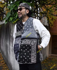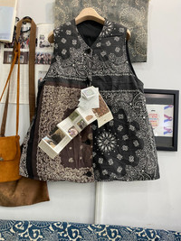 VISVIM 20AW KORA DOWN VEST ICT JKT black cashew ancient cloth flower patchwork mud dyed distressed v