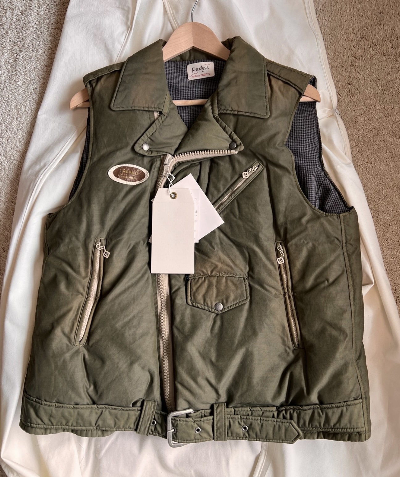[ Description ] Introducing the Strabler Down Vest from VISVIM, a new addition to their 2021 Spring/Summer collection. Made from naturally dyed down material, this vest exudes a stylish motorcycle vest vibe. The designer has incorporated distressed and yellowing effects on the exterior for a vintage feel. [ Condition ] 10/10 (+ Tag) [ Measurements ] - Size: 3 - Length: 69 cm - Chest: 114 cm - Sleeve: 42 cm [ Authenticity ] 100% authentic [ Shipping policy ] - Ship from Hong Kong to global with a flat rate of 25 USD - It typically takes 1-2 weeks to be delivered, depending on the destination [ Return policy ] All sales are final, no cencellation or return or exchange [ Item ID] 20230514-14
