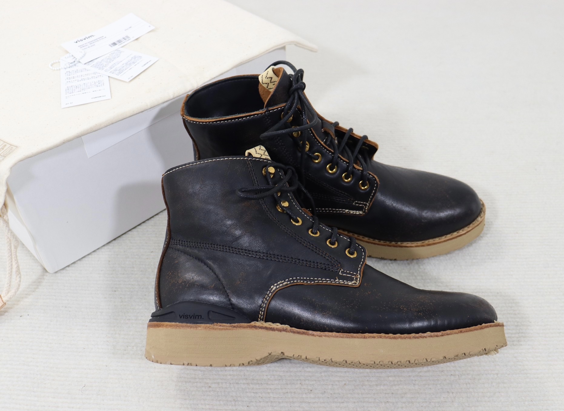 [ Description ] Fashionistas, we bring you the all-new Visvim 22aw Virgil Boots Folk. These boots are crafted from soft and supple French sheepskin leather, with an aged texture and feel that adds a fashionable element to your ankles. The black distressed design, paired with tea-core leather, exudes a unique vintage style. Whether it's for a casual or formal occasion, these Visvim V boots are the perfect choice for you. Add it to your fashion arsenal now and become a unique presence in the crowd. [ Condition ] 10/10 (+Tag) [ Measurements ] - Size: US8 [ Authenticity ] 100% authentic [ Shipping policy ] - Ship from Hong Kong to global with a flat rate of 25 USD - It typically takes 1-2 weeks to be delivered, depending on the destination [ Return policy ] All sales are final, no cencellation or return or exchange [ Item ID] 20230501-01
