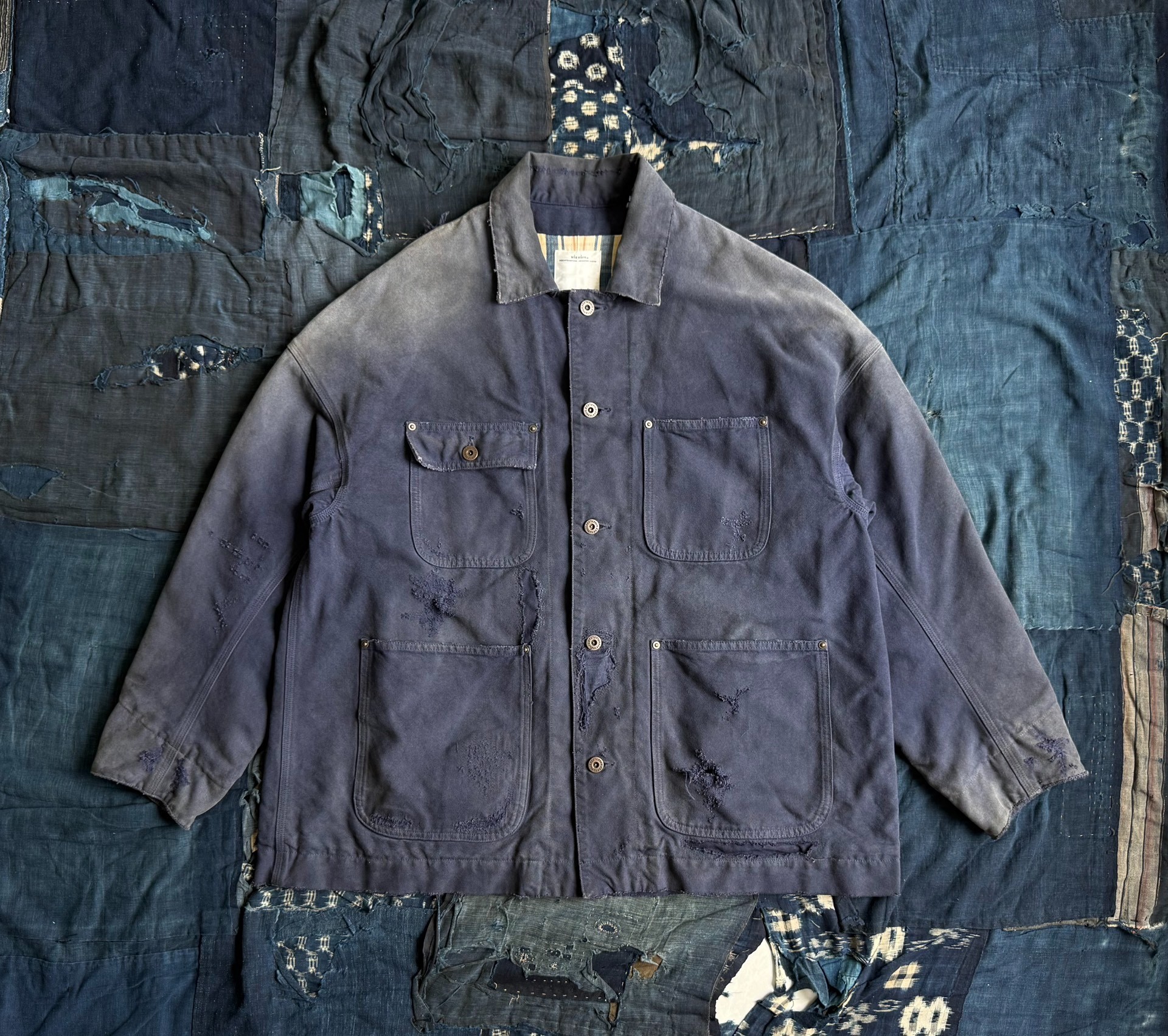 VISVIM 22SS MACRAY COVERALL CRASH distressed work jacket with four pockets