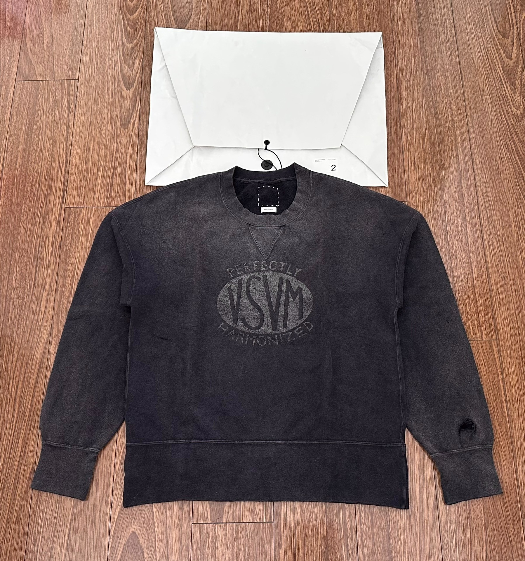VISVIM COURT SWEAT L/S CRASH destruction print crew neck sweatshirt