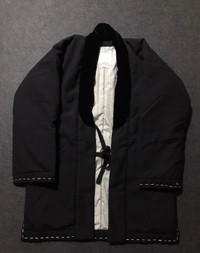 [ Description ] The Visvim Dotera down 16aw coat is a luxurious and fashionable piece, crafted with a blend of wool and velvet to create a unique and rich texture. The coat features a comfortable and warm down filling, perfect for colder weather. The design draws inspiration from traditional Japanese Dotera robes, with a modern twist that combines heritage and contemporary style. This coat is a must-have for any fashion-forward individual looking to make a statement with their outerwear. [ Condition ] 9.5/10 [ Measurements ] - Size: 1 - Length: 79 cm - Chest: 108-110 cm - Cuff width: 18 cm [ Authenticity ] 100% authentic [ Shipping policy ] - Ship from Hong Kong to global with a flat rate of 25 USD - It typically takes 1-2 weeks to be delivered, depending on the destination [ Return policy ] All sales are final, no cencellation or return or exchange [ Item ID] 20230512-01