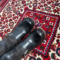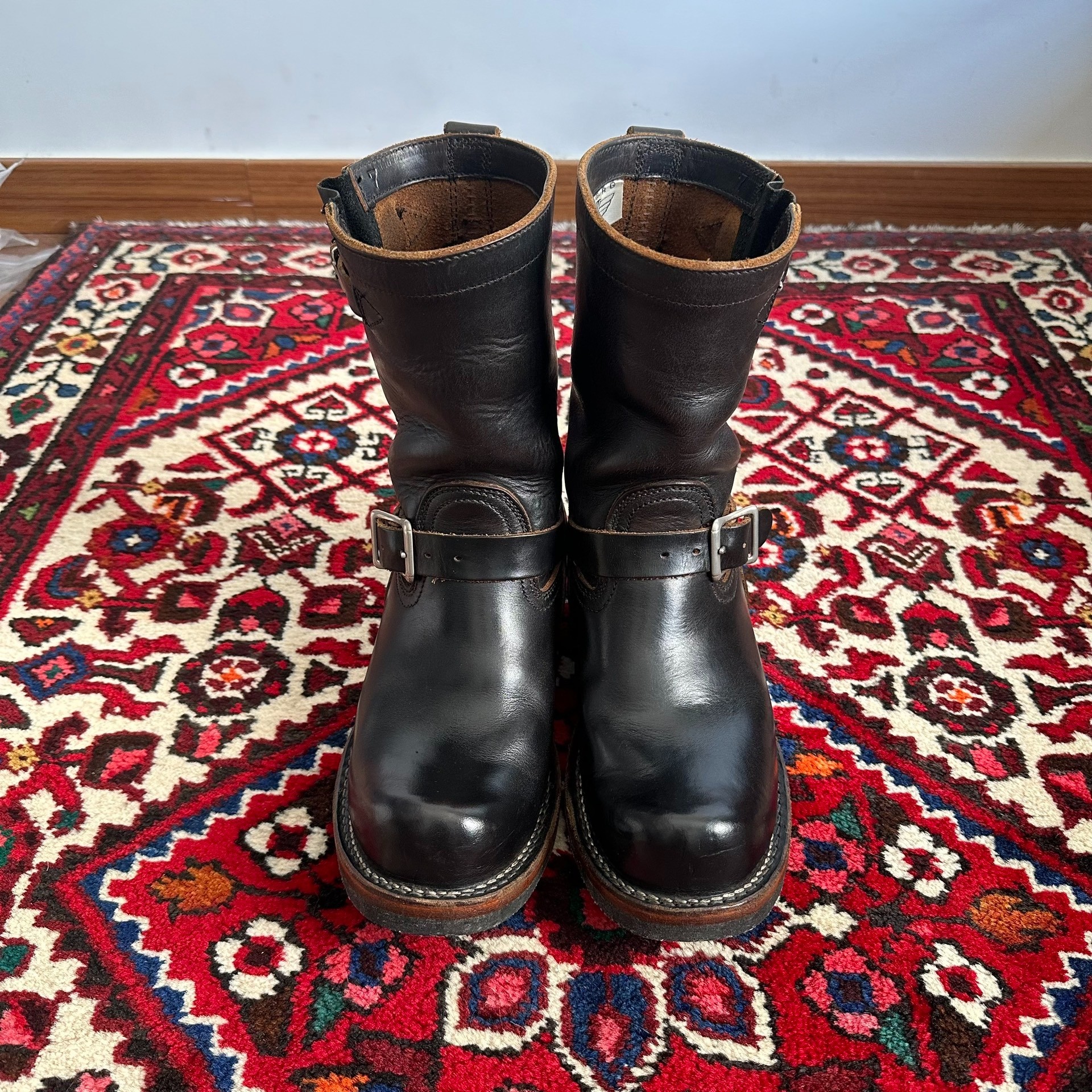 Visvim Engineer boots, tea leather tipped toe, no lining, 7e