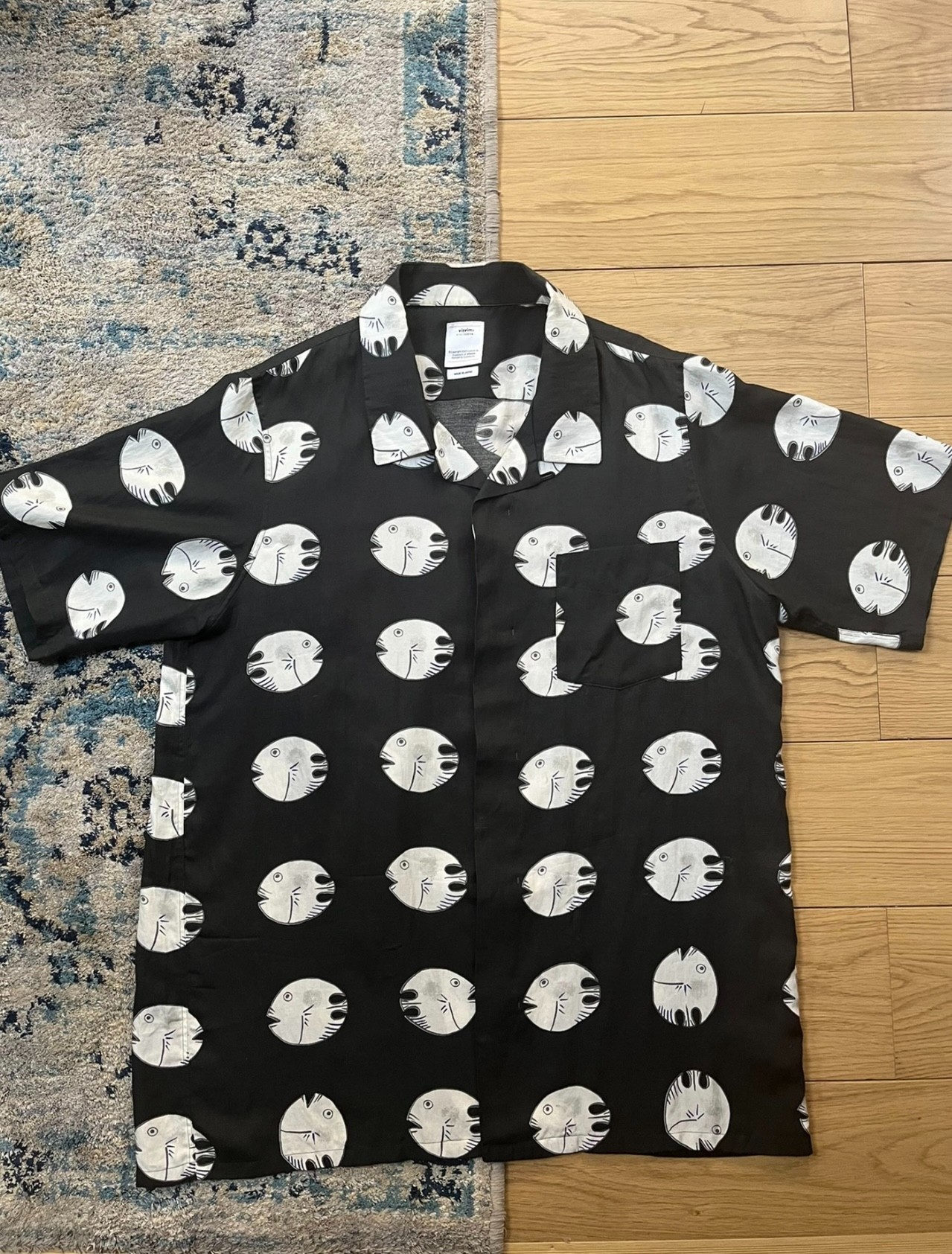 [ Description ] This is a short-sleeved shirt from VISVIM's 18SS collection, featuring a fishy pattern and fishbone-shaped buttons, creating a casual and fashionable style. The shirt has a loose fit and is comfortable and breathable, with high-quality materials and craftsmanship used in the fabric and construction, creating a superior texture. [ Condition ] 9.5/10 [ Measurements ] - Size: 4 - Length: 76 cm - Chest: 120 cm [ Authenticity ] 100% authentic [ Shipping policy ] - Ship from Hong Kong to global with a flat rate of 25 USD - It typically takes 1-2 weeks to be delivered, depending on the destination [ Return policy ] All sales are final, no cencellation or return or exchange [ Item ID] 20230509-05