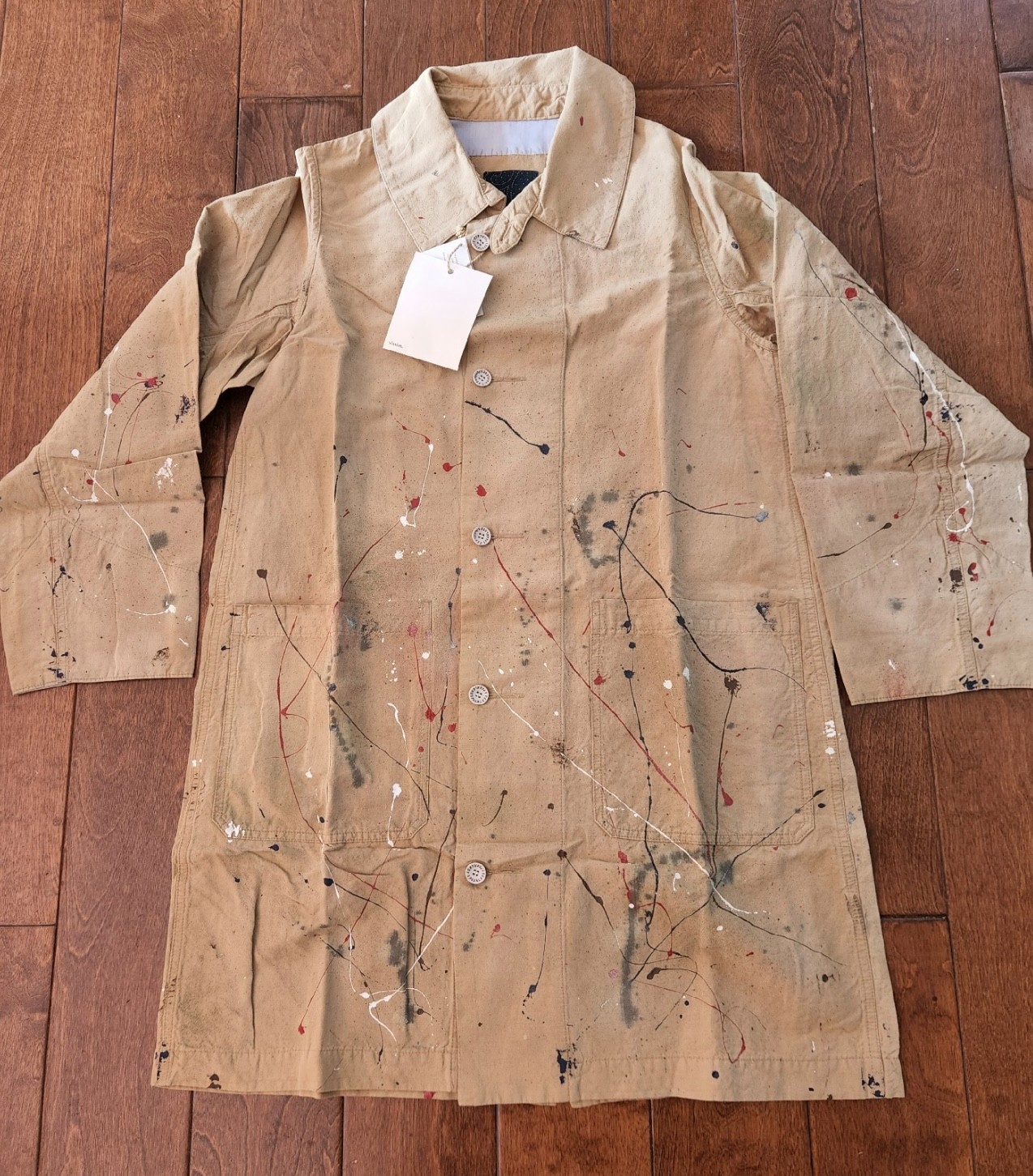 [ Description ] The VISVIM ICT 18aw GREASE MONKEY COAT monkey ink-splattered coat is a reissue of the original monkey coat, which is designed with an ink-splattered pattern that gives it a unique visual effect. This coat is crafted from high-quality materials and detailed design, which is consistent with VISVIM's high standards of quality and fashion. [ Condition ] 10/10 (+ Tag) [ Measurements ] - Size: 1 [ Authenticity ] 100% authentic [ Shipping policy ] - Ship from Hong Kong to global with a flat rate of 25 USD - It typically takes 1-2 weeks to be delivered, depending on the destination [ Return policy ] All sales are final, no cencellation or return or exchange [ Item ID] 20230513-11