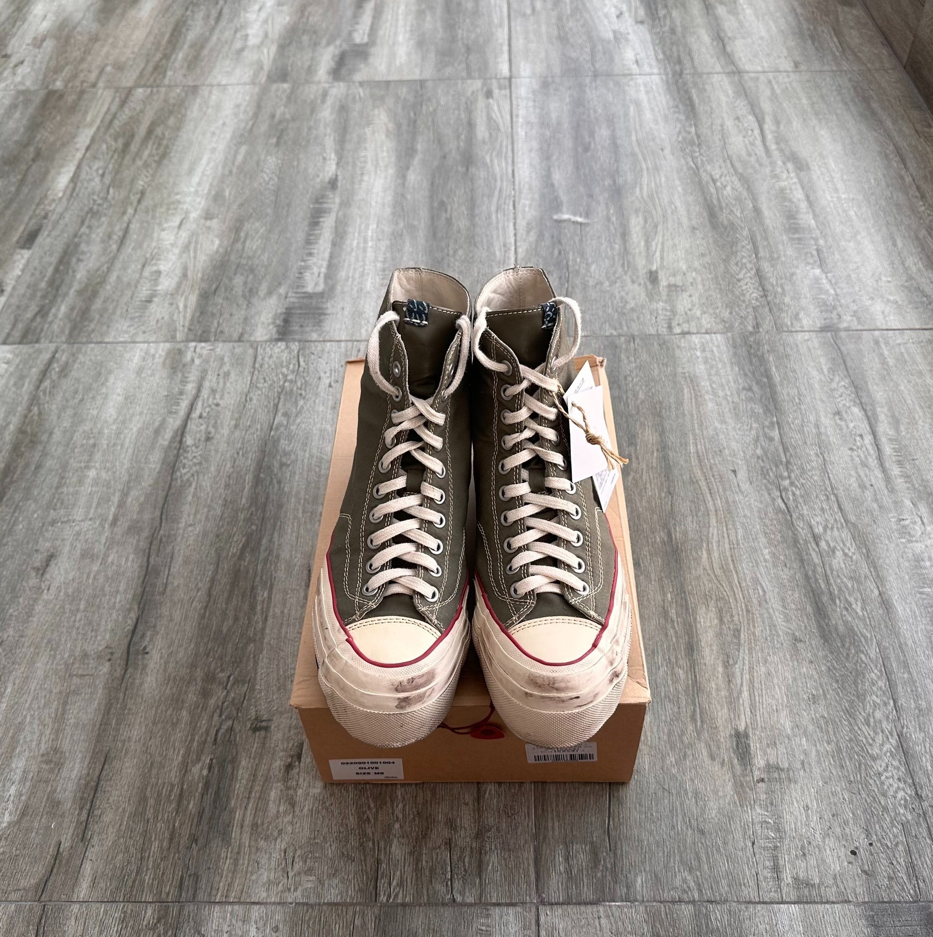 VISVIM ICT SKAGWAY HI G.PATTEN distressed and dirty high-top canvas shoes, 711 exhibition exclusive