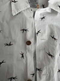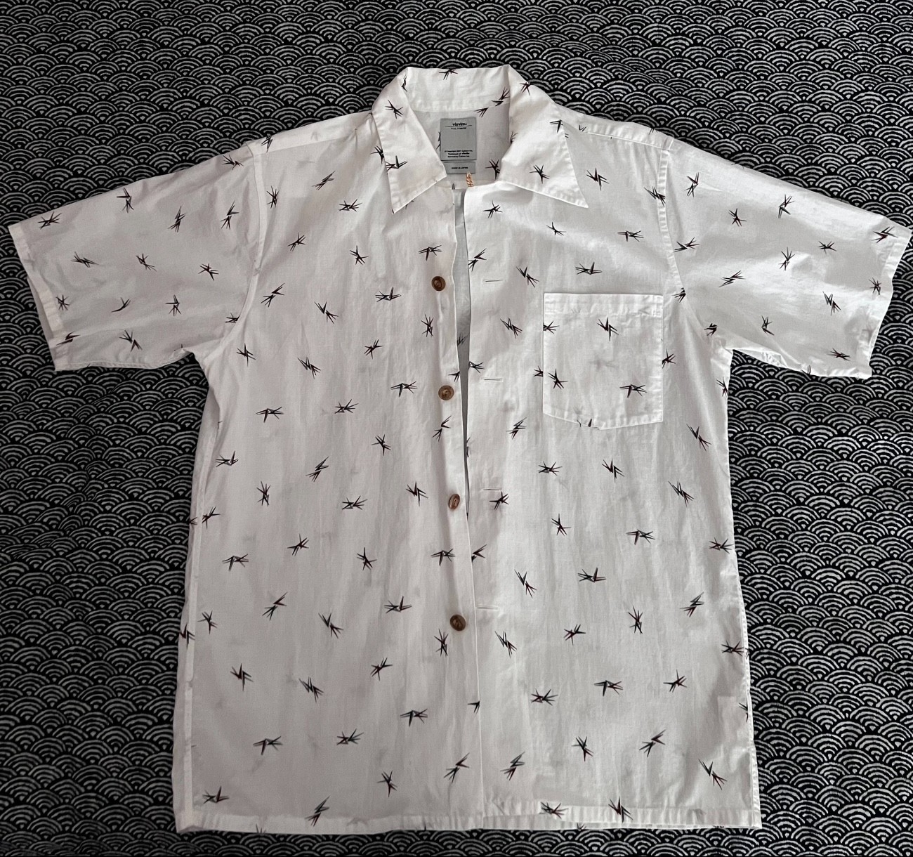 [ Description ] VISVIM WALLIS SHIRT is a fashionable men's shirt that features a unique vv arrow print and all-wooden buttons. The slight oxidation caused by long-term folding also adds a touch of special charm to this shirt. It is a stylish item that exudes a strong Japanese style and can be paired with various casual or formal occasions to showcase your unique personality and charm. [ Condition ] 9.5/10 [ Measurements ] - Size: 2 - Length: 68 cm - Chest: 104 cm - Shoulder: 43 cm [ Authenticity ] 100% authentic [ Shipping policy ] - Ship from Hong Kong to global with a flat rate of 25 USD - It typically takes 1-2 weeks to be delivered, depending on the destination [ Return policy ] All sales are final, no cencellation or return or exchange [ Item ID] 20230513-02