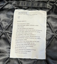 [ Description ] This is the WTAPS Double Eagle Jacket, a product from the 17AW TEAM collection. The jacket is made of high-quality fabric with clear texture, comfortable to the touch, and durable. The design is simple yet stylish, featuring the brand's iconic double eagle logo on the chest, showcasing a fashion-forward look. Please note that this jacket runs large, so careful consideration of size selection is necessary. [ Condition ] 9.5/10 [ Measurements ] - Size: 2 - Length: 70 cm - Chest: 120cm - Shoulder: 46 cm [ Authenticity ] 100% authentic [ Shipping policy ] - Ship from Hong Kong to global with a flat rate of 25 USD - It typically takes 1-2 weeks to be delivered, depending on the destination [ Return policy ] All sales are final, no cencellation or return or exchange [ Item ID] 20230508-09