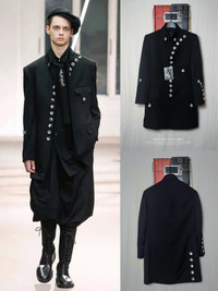 Yohji Yamamoto 19aw Asymmetrical Black and White Buttoned Napoleon Coat