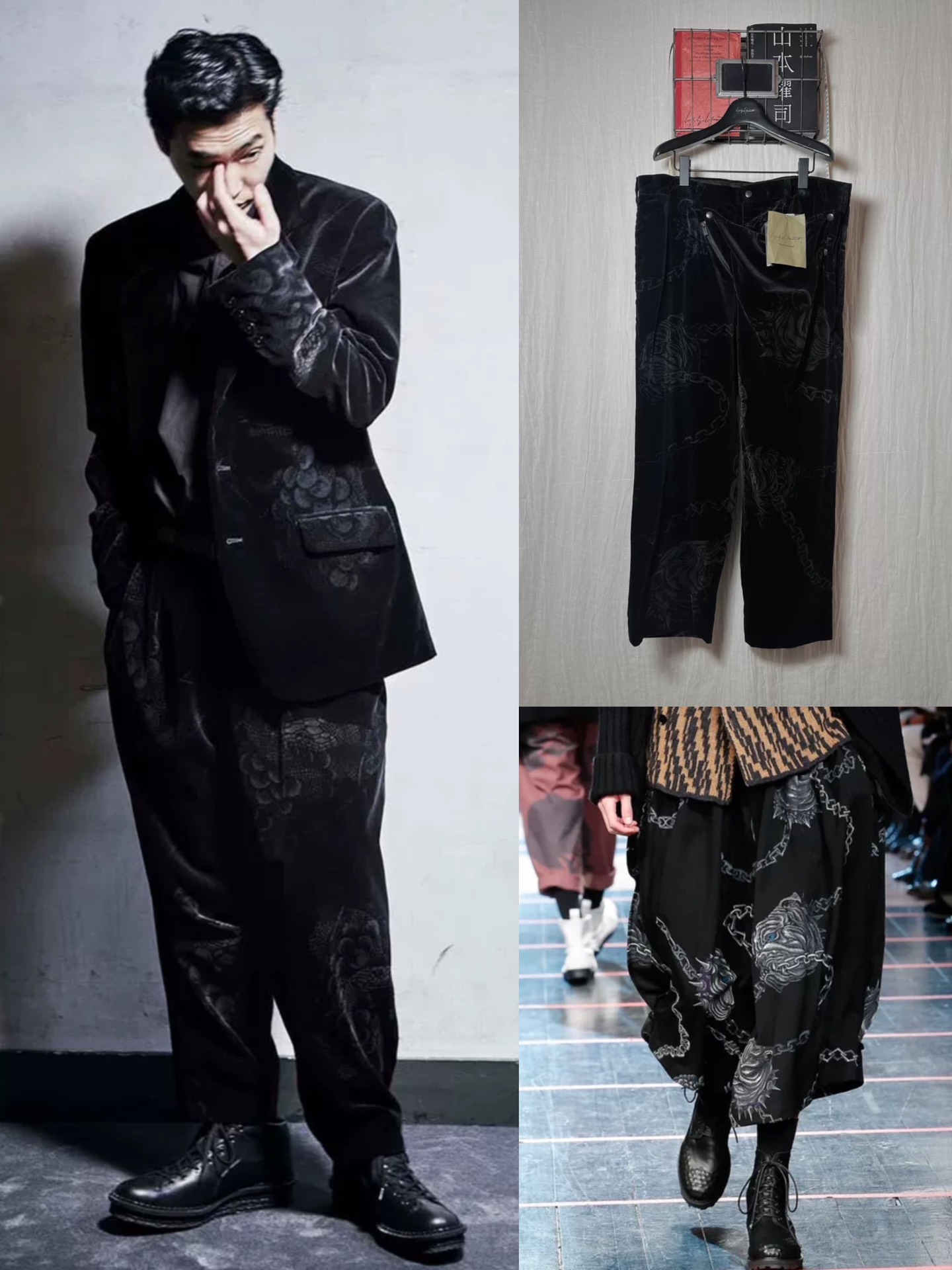 YOHJI YAMAMOTO 19aw dog chain velvet deconstructed trousers