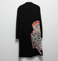 Yohji Yamamoto 2017AW Embroidered graffiti hand-sewn coat The shoulders are hand-sewn by craftsmen to connect the sleeves This printing is hand-printed and dyed with illustrations drawn by the designer himself. In order to express the touch of the brush, a special mold is used, and the craftsmen print it by hand little by little The embroidery part is also very characteristic By deliberately making the overlap of the threads and the uneven length, it expresses the touch, unevenness, and three-dimensional feeling of the handwritten brush. All processes are done with artisan skills Size 2 Like new Global shipping FedEx All sales are final, no returns 20231218-04