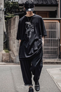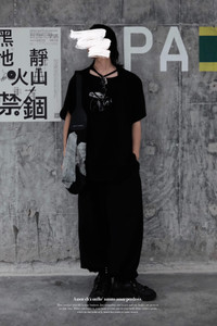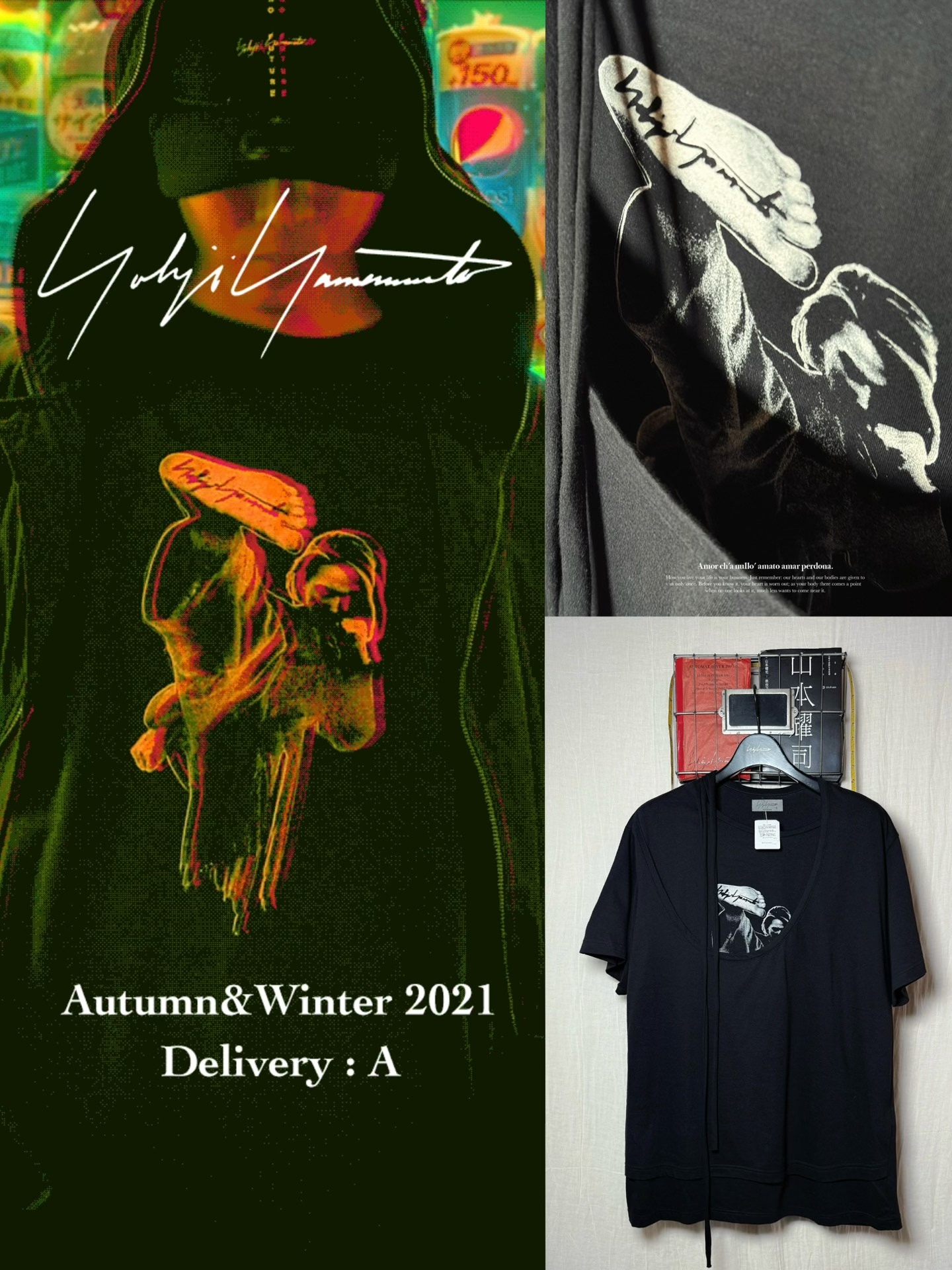 Yohji Yamamoto 21aw Kung Fu Boy Ribbon Portrait Double Short Sleeve T-shirt