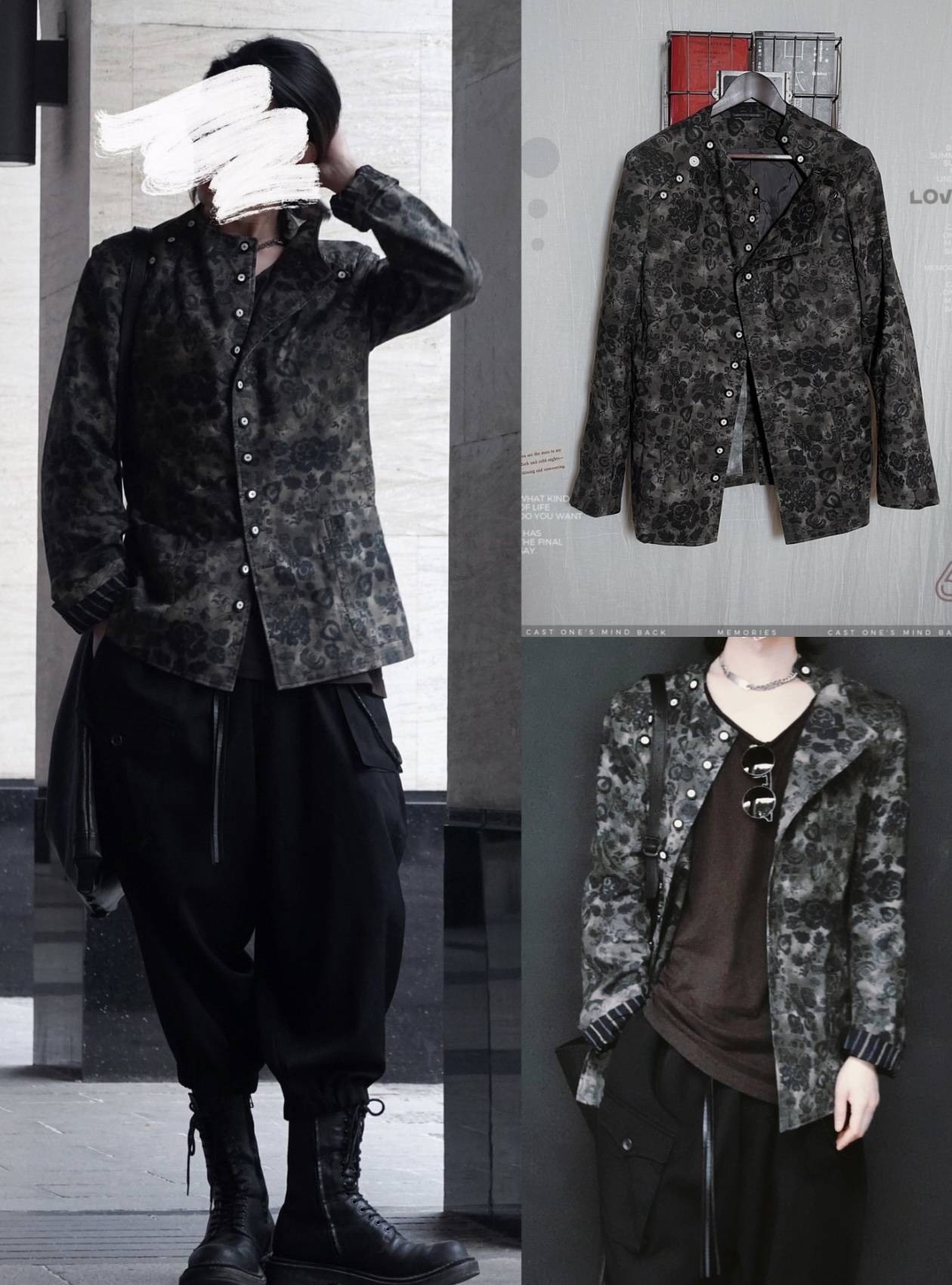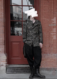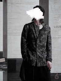 Yohji Yamamoto Pour Homme15ss show model discharge dyeing structure gem buckle coat