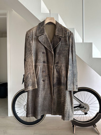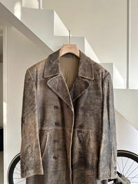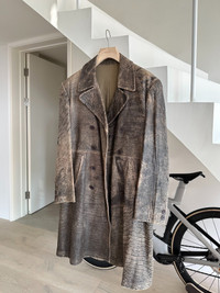 Yohji Yamamoto sheepskin distressed irregular tumbled leather jacket coat