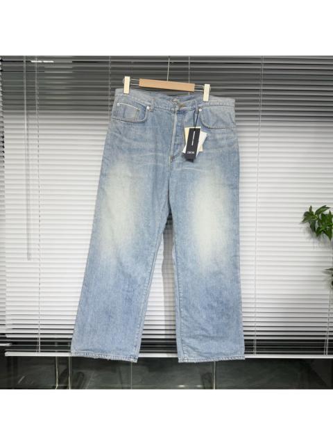 DIOR 2024 New Collection: Slogan embroidered logo leather denim jeans