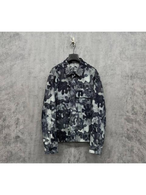 Dior Wool-Paneled Denim Jacket with Embroidered Logo and Button Placket