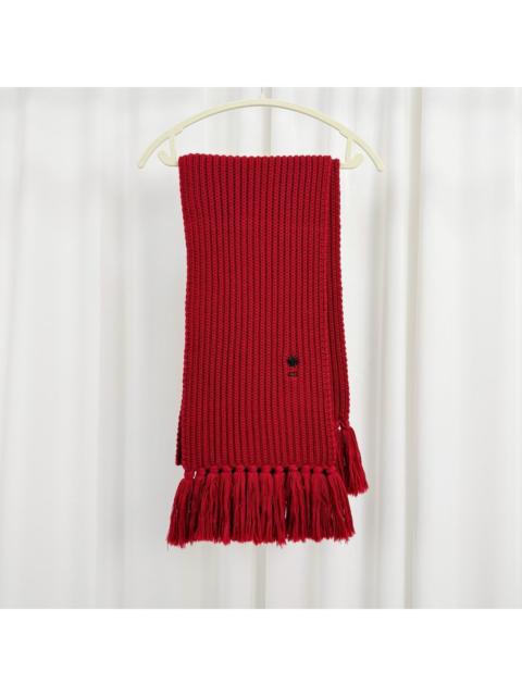 Dior red embroidered bee and CD logo fringed scarf