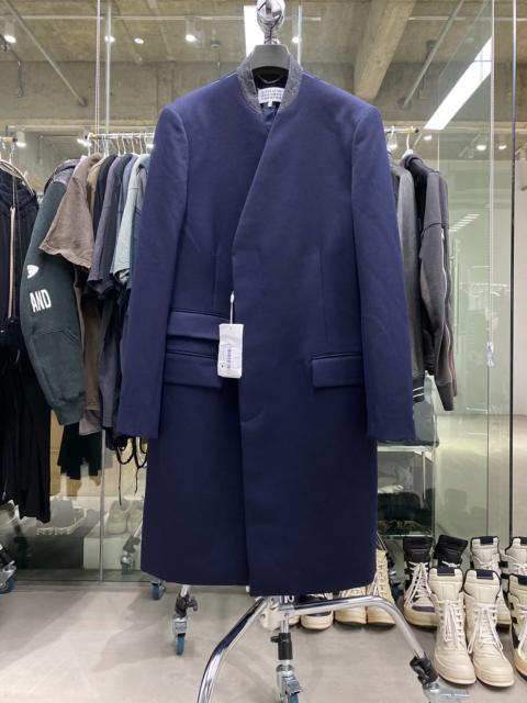 Maison Margiela navy blue denim collarless wool coat