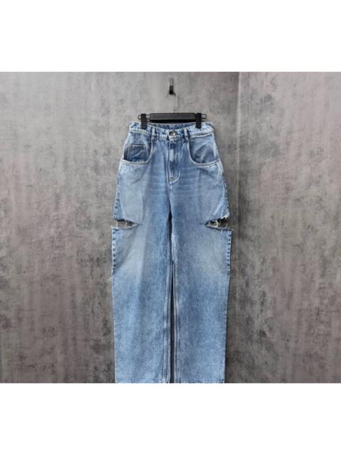 GUCCI Embroidered Logo Leather Brand Washed Jeans