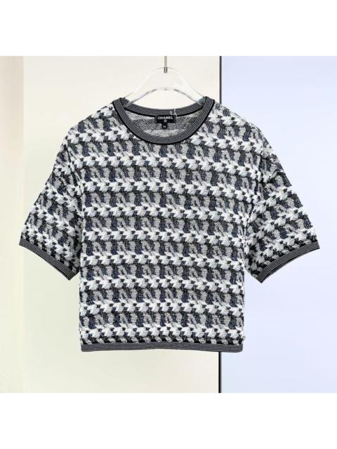 Chanel 20S pink and white cashmere knit short-sleeved top