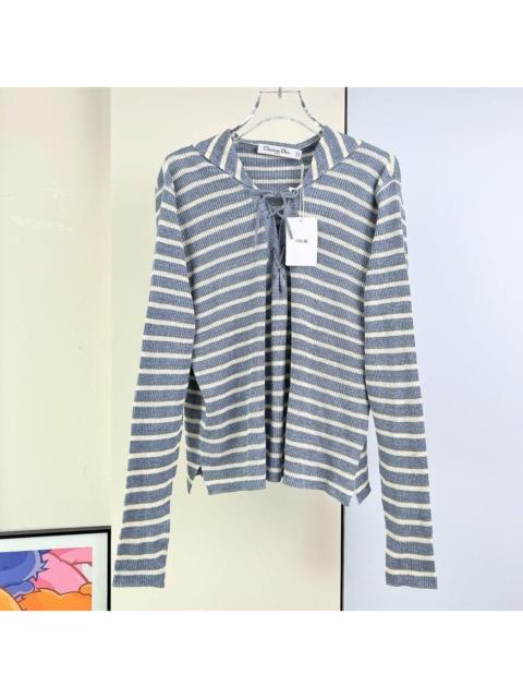 Dior 25 new blue and white striped drawstring sailor collar knitted top
