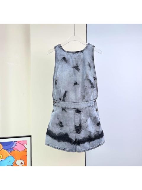 Dior blue and white striped knit top with sailor collar and embroidered lettering.