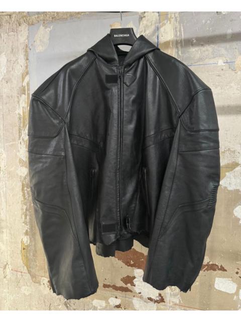 Balenciaga 24SS Show Hooded Biker Jacket Hooded Biker Leather Jacket