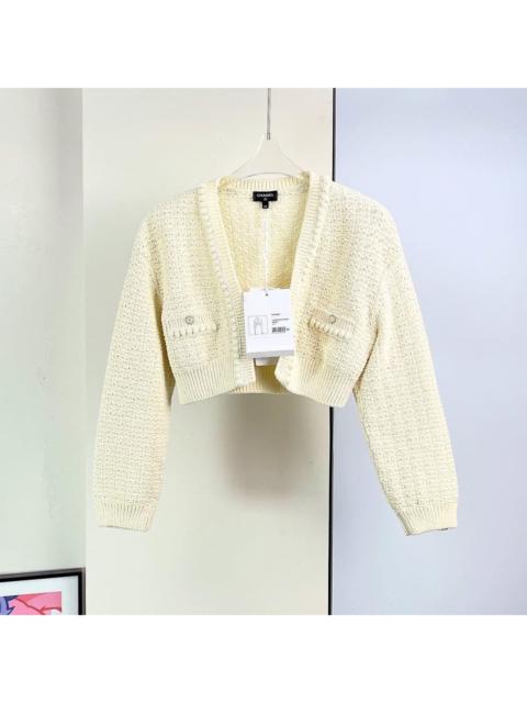 Chanel 22S off-white short-sleeved knitted cardigan top