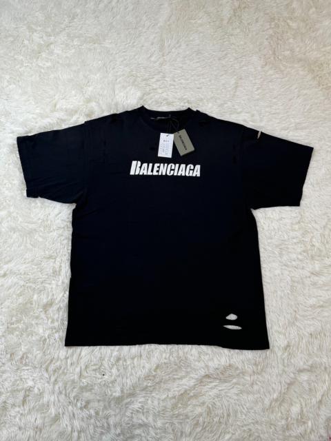 Balenciaga Paris House Letter Printed Distressed Round Neck Short Sleeve