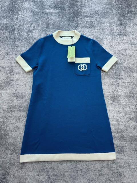 Gucci blue and white color-block short-sleeved knit dress