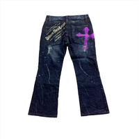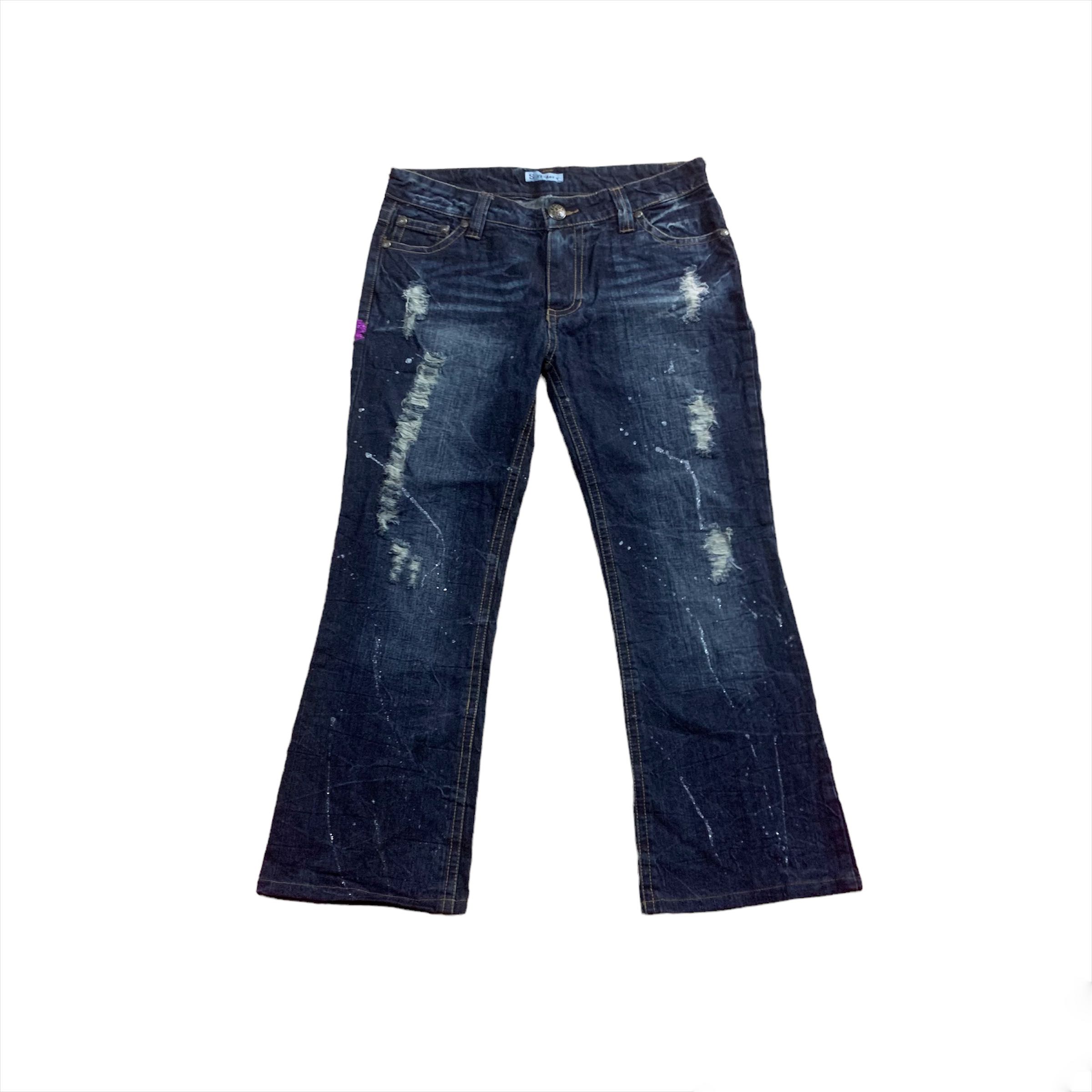 JAPANESE BRAND 🔥 Sorridere Ripped Distressed Paint Splainter Cross Logo Flared Jeans