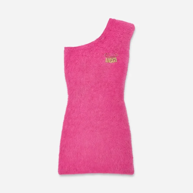 We're ready for a Pride celebration on the daily with the URSeen Dress. Designed to embrace the creativity, adaptability, and confidence of the LGBTQ+ community, this vivacious dress has an asymmetrical shape with a form-fitting faux-fur fabrication inspired by the Feel of UGG®. Asymmetrical Mini dress. Self: 99% Nylon, 1% Elastane Sweaterknit. Lining - Unlined. UGG® graphic logo metal charm pin. Shoulder pad on wearer's left shoulder. Grip tape around neckline. 33 1/2 inch HPS Length [Size Unisex S]. Imported. UGG® URSeen Dress Faux Fur Dresses, Size ALL GENDER XS