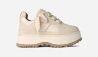 Introducing a new evolution of UGG®. Our Astromel is a platform take on our Lowmel sneaker. Designed with a suede, nylon, and recycled textile upper, the Astromel rearranges classic sneaker elements into something completely new, yet unmistakably UGG®. The Twin Seam details, boosted 2 inch platform, and cushioned EVA footbed channel the look and Feel of UGG® from the inside out. Wear the Astromel your way with multiple lacing opportunities and two included shoe lace styles: a flat ticked lace for a looser fit, or a satin lace for a more secure fit.This product was made in a factory that supports women in our supply chain with the help of Reimagining Industry to Support Equality (RISE). This collaborative initiative creates partnerships with brands like ours to empower and educate women in the workplace. Suede, Nylon, 100% recycled polyester textile fibers upper. The Twin Seam detailing, Webbing heel pull, The UGG® Logo patch, Padded tongue. Satin laces, Ticked polyester laces. Polyester mesh lining. Textile sockliner (45% recycled polyester, 55% polyester). EVA footbed. Sugarcane EVA outsole. 2 inch platform height. The UGG® Logo, embossed. Additional set of laces included. RN 88276. UGG® Women's Astromel Suede Shoes in Jasmine, Size 7