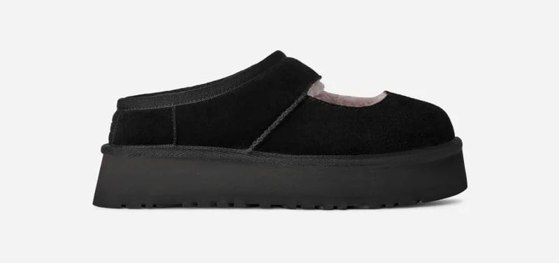 Get ready for a new Classic. Our Bea Mary Jane is built on our 1.75 inch platform from an ultra-light sugarcane EVA outsole. Inside, you'll find The Feel of UGG® with our cozy-as-can-be sheepskin lining and our UGG®plush insole. Outside, you'll see iconic details like our Twin Seam and Overstitched Binding. Wear them with socks or without, indoors and out; our Bea Mary Jane is yours for the taking.This product was made in a factory that supports women in our supply chain with the help of Reimagining Industry to Support Equality (RISE). This collaborative initiative creates partnerships with brands like ours to empower and educate women in the workplace. Suede upper. Padded collar. 10mm sheepskin lining. 10mm UGG®plush 60% upcycled wool, 40% lyocell insole. Foam footbed. EVA midsole. Sugarcane EVA outsole. Textile binding made from 100% recycled polyester fibers. The UGG® Logo, heat-embossed, Woven label with The UGG® Logo on insole. Best for: Casual. RN 88276. This product contains real fur from sheep or lamb. Fur may be sourced from Australia, Ireland, the United Kingdom, or the United States. It has been artificially dyed and treated.. UGG® Women's Bea Mary Jane Sheepskin Slippers in Black, Size 6