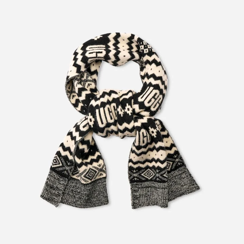 It's your new favorite winter print: UGG®Isle. Wrap yourself in the soft wool-blend of our Chunky UGG®Isle scarf and keep your neck toasty on your commutes, shopping trips, and outdoor excursions. Chunky UGG®Isle Scarf. Self - 37% Acrylic/35% Nylon/25% RSW Wool/3% Elastane. Lining - Unlined. 78 inch Length x 9 inch Width. Imported. UGG® Women's Chunky UGG®Isle Scarf Acrylic Blend
