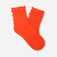 Embrace your softer side. Our Karsyn Lettuce Edge Quarter II adds a flirty spirit that looks best peeking out of your favorite shoe. We took our ruffled cuff one step further and ran it down the back calf, positioning these to be on full display. Made with ultra-soft Responsible Cotton, these have serious staying power in your sock rotation. Quarter sock with lettuce edge details around cuff and down back calf. 78% Responsible Cotton/20% recycled polyester/2% elastane. Responsible Cotton means: responsible cotton sourcing scheme cotton, recycled cotton, or organic cotton. Jacquard knitted The UGG® Logo centered on footbed. 5 1/2 inch height. Packaged with hanger and belly band. Fits shoe size: 5-10. Imported. UGG® Women's Karsyn Lettuce Edge Quarter II Cotton in Petal/Lobster