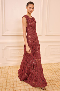 Look 31 on the SS23 Runway, the Anita Dress is a dimensional, hand-crocheted dress adorned with intricate wildflowers that are meticulously placed on the form. Designed with a sense of occasion, this red floor-length dress has a fitted bodice that releases into a skirt alive in poetic volume. - Floral hand-crochet - Model Height: 5'10" - Designed for a slim fit, volume in hem - Maxi length - Round neckline - Sleeveless - Full length slip lining - Pullover style - Composition: 100% cotton - Dry clean only - Style# SP260717