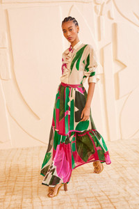 Featured in Look 7 on our SS25 runway, the Elaine Skirt is alive with imagery from American artist Lee Krasner’s 1971 painting, “Palingenesis.” Beautifully saturated, this elongated midi style is crafted from cotton poplin that transforms into floaty silk georgette. This multicolored skirt is full of volume and movement, with gathering that emphasizes the waist. It has side pockets and fastens with a concealed side zipper. This limited-edition garment is part of our deeply meaningful collaboration with the Pollock-Krasner Foundation. Composition: 100% Cotton Size & Fit Size and Fit Notes: Fixed Waist Invisible Zipper