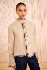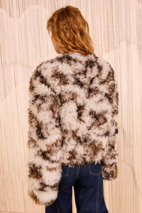 The Irina Coat is a reversible, wardrobe heroine in ultra-lush shearling that’s dyed with a spotted effect for a naturally textured look. This impeccably soft brown and cream coat features a sleek, collarless silhouette and is backed in suede for added softness. - Brushed shearling - Model Height: 5'10" - Designed for a boxy fit - Reversible - Side pockets - Buttons through front - Composition: 100% lamb shearling - Fur specialist clean only