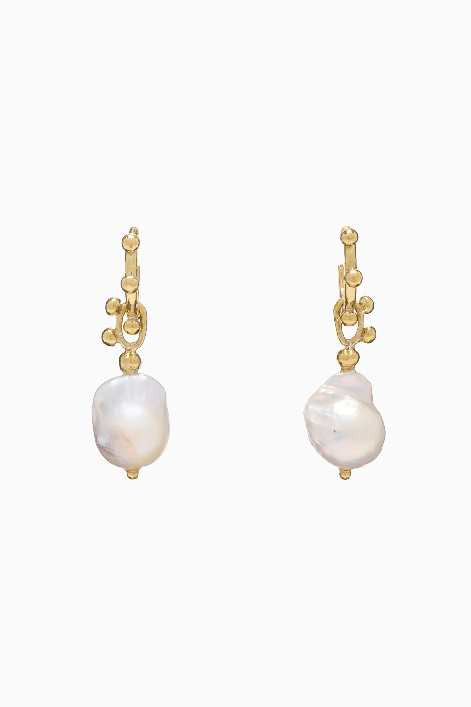 The Lilith Earring is distinctive yet simplistic enough for everyday wear. Handmade by our artisan partners in Nairobi, it has a brass hoop profile with tiny granulations inspired by ancient jewelry and is adorned with baroque freshwater pearls. - Handcrafted in Nairobi, Kenya - Stone: Freshwater pearls - Post and gold-plated earring back - All of our brass pieces are E-Coated to preserve their luster. - Due to the handcrafted nature of our jewelry, each is uniquely beautiful and one-of-a-kind. - All of our earrings are made with gold-filled wire, hypoallergenic stainless steel ear posts, and gold-plated earring backs. Size & Fit Find your size with our .