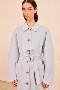 Tailored from signature double-faced wool, the Lisbeth Coat is a perennial essential with a sleek, single-breasted profile in timeless slate gray. It has lightly sculpted sleeves and can be cinched with the belt for a more defined look. - Double-faced wool - Model Height: 5'10" - Designed for a relaxed fit, removable tie belt - Long sleeves with buttoned cuffs - Front patch pockets - Single-breasted button front - Composition: 75% wool, 10% acrylic, 10% polyamide, 5% cashmere - Dry clean only