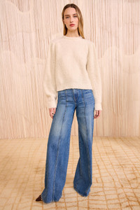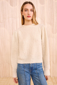 An essential crewneck, the Romily Pullover is spun from superfine alpaca yarns with a boucle finish for soft, yet dimensional texture. This pullover has gently puffed sleeves and arrives in white for elegant versatility. - Alpaca knit - Model Height: 5'11" - Designed for a relaxed fit - Crew neckline - Long sleeves - Pullover style - Composition: 89% superfine alpaca, 11% polyamide - Dry clean only