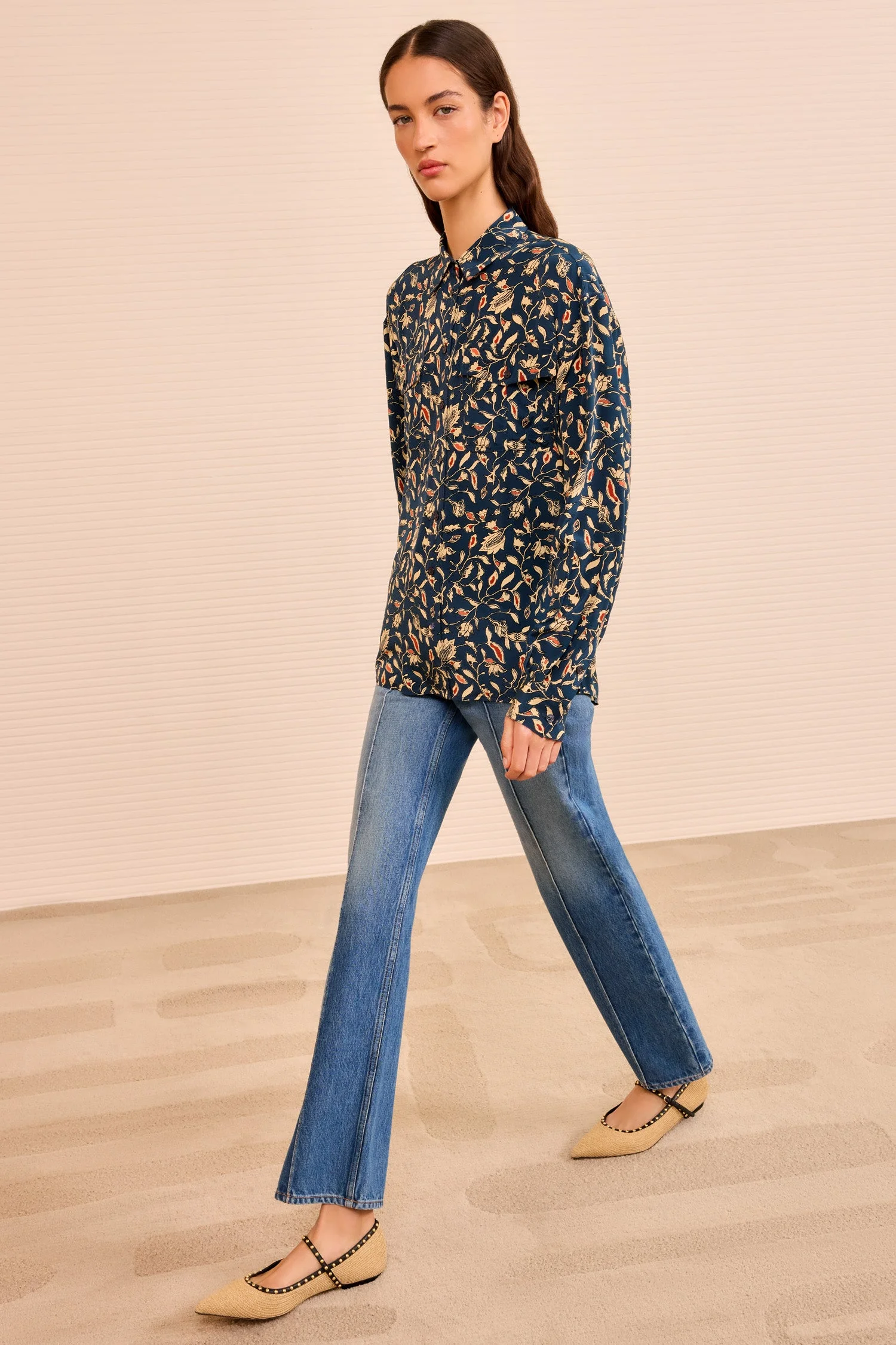 The Soren Shirt blooms with a vine-like, floral batik print atop signature silk crepe de chine. This multicolored shirt has a collared silhouette that lends timeless ease, while the relaxed fit is ideal for pairing with denim and tailoring. - Silk crepe de chine - Model Height: 5'10" - Designed for a relaxed fit - Collared neckline - Long sleeves with button cuffs - Front patch pockets - Buttons through front - Composition: 100% silk - Dry clean only