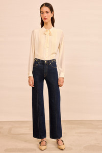 The Agatha Jean is the newest addition to the Ulla Johnson denim lineup. The perfect everyday silhouette, it’s handmade in Los Angeles in our rich, vintage-inspired Tigris wash with a straight leg and pintucks down each side for an elevated finish. - Non-stretch denim - Handcrafted in Los Angeles - Model Height: 5'10" - Mid-rise, straight leg - Five-pocket construction - Signature monogram leather patch and hand-hammered ring - Front button and concealed zipper - Composition: 100% cotton - Machine wash cold