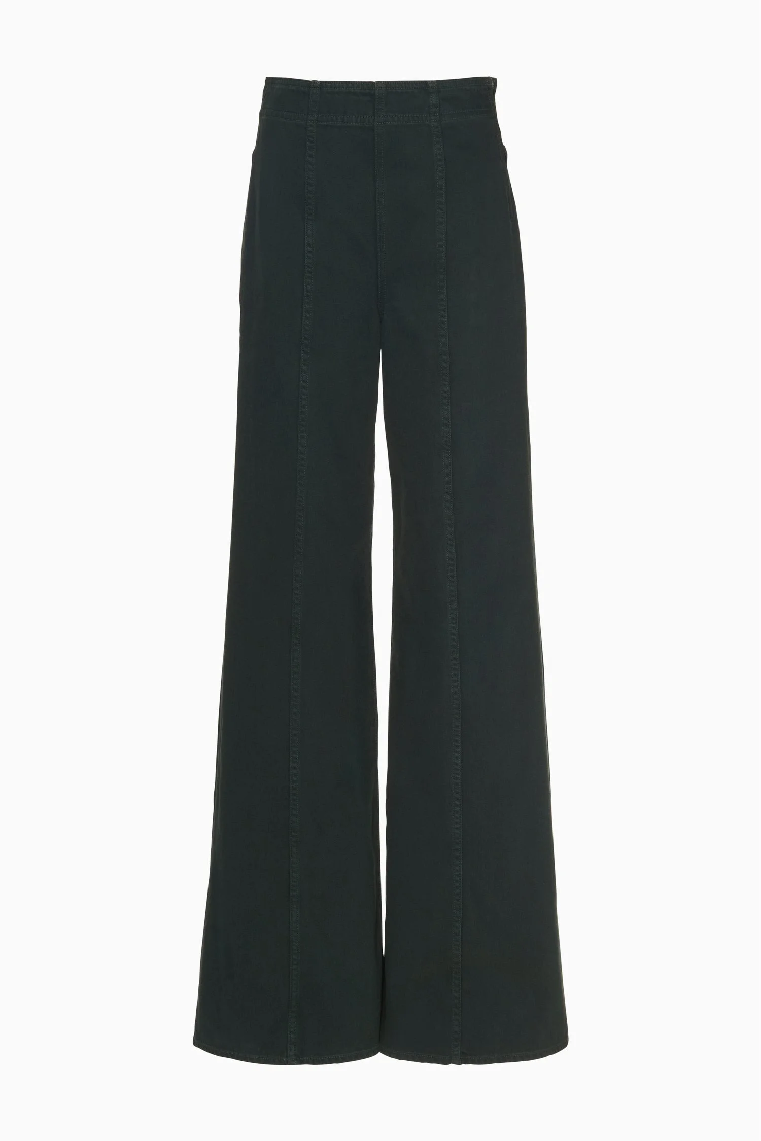 Elongating the form, the Bianca is a classic wide-leg design with center-front raised seams down each side and a Hollywood waistband that defines and flatters. It’s responsibly handmade from premium denim in a rich and versatile green for an elevated essential. - Non-stretch denim - Handcrafted in Los Angeles - Model Height: 5'10" - High-rise, wide leg - Back pockets - Inseam: 32 - Signature monogram leather patch and hand-hammered ring - Side-seam zipper - Composition: 100% cotton - Machine wash cold